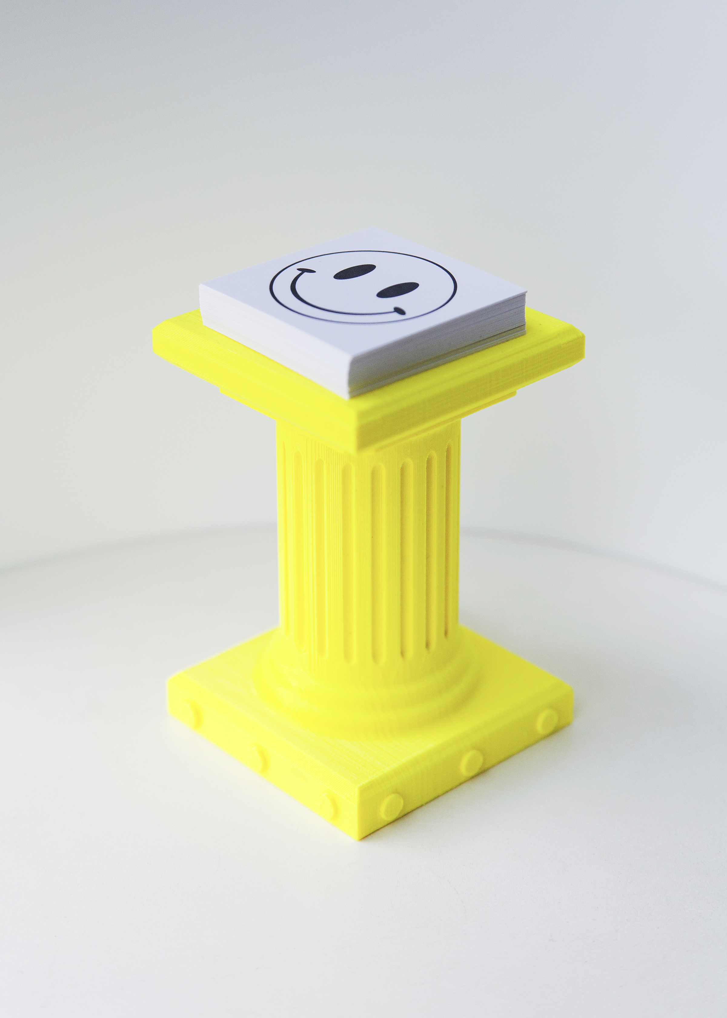 Pillars sculpted in SolidWorks, a 3D modeling program, and then 3D printed in ABS plastic.